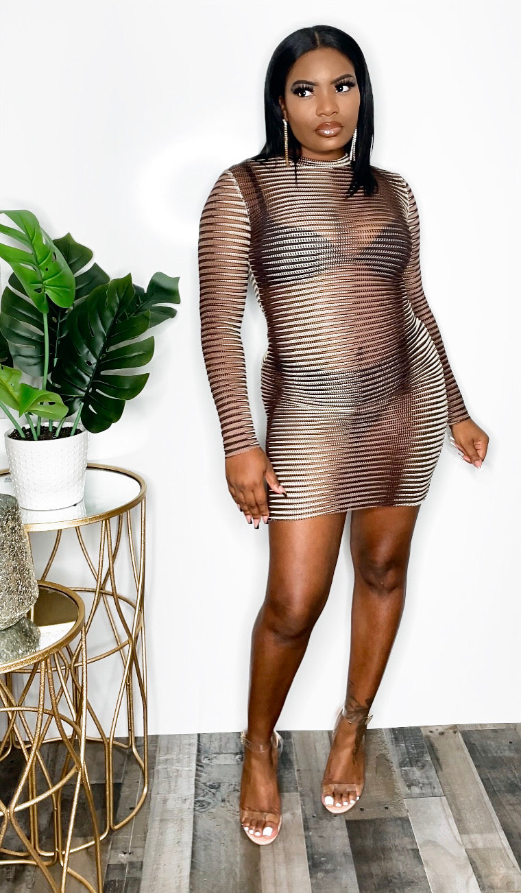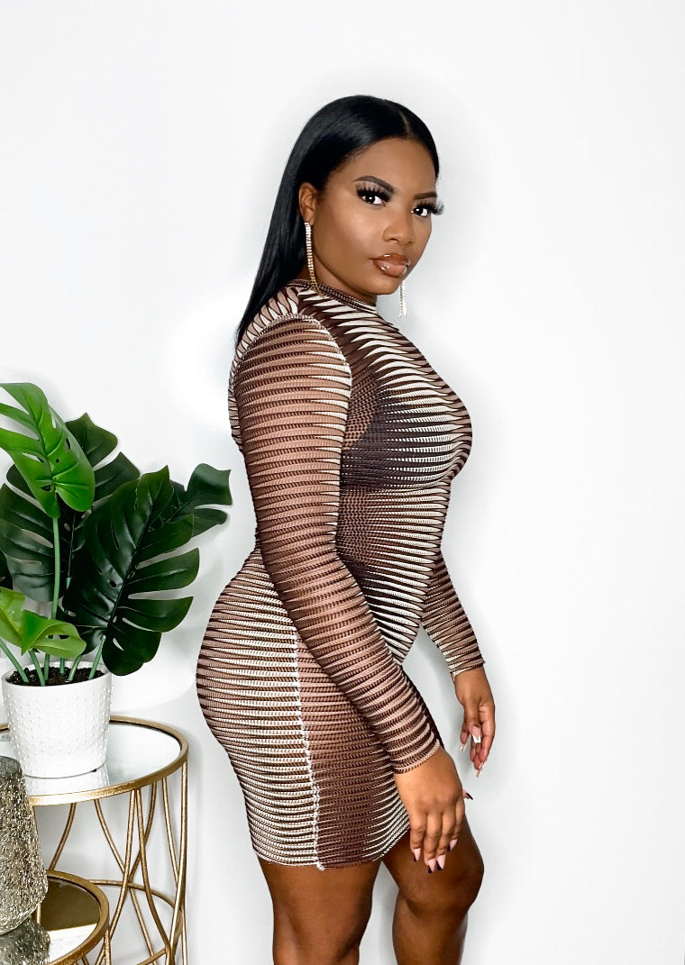 Koffee N Kream -Long Sleeve Multicolored dress