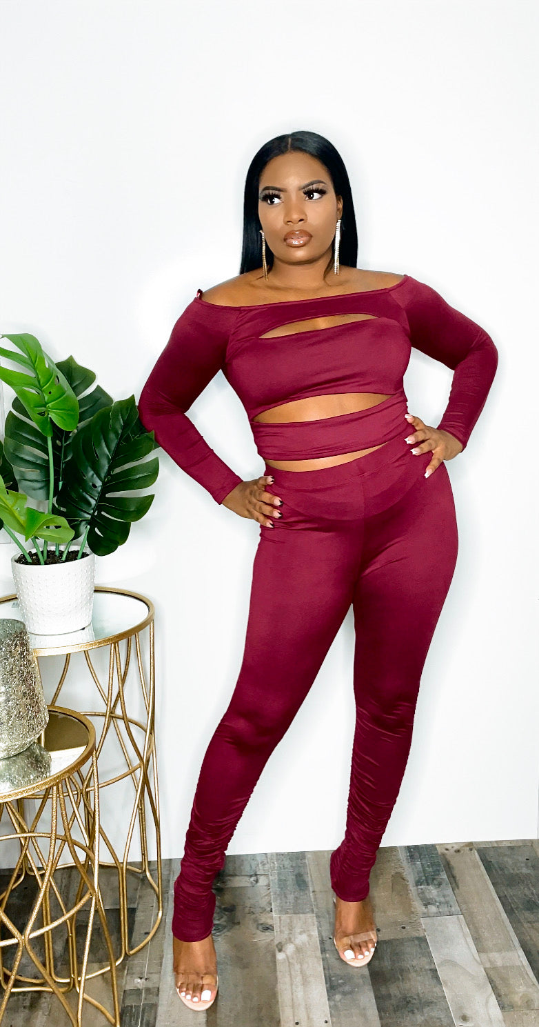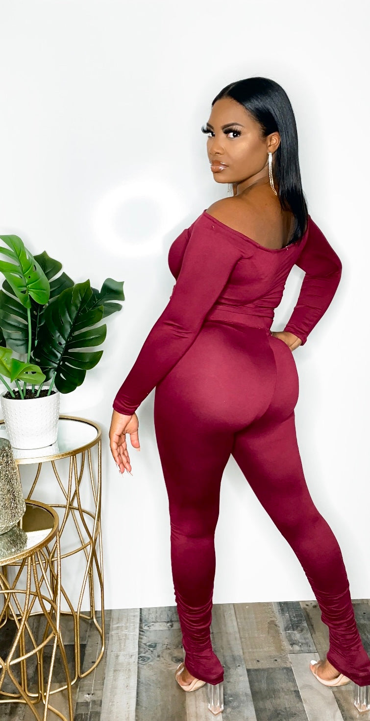 Wine-On-Me - Off Shoulder Long Sleeve Set